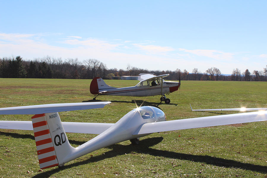 The Philadelphia Glider Council is a member owned and operated non-profit flight school composed of roughly 100 men, women, kids, and families drawn from all walks of life who are bound together by the love of soaring flight. We own a beautiful 125-acre private turf gliderport in Hilltown, PA (Bucks County) devoted exclusively to soaring. Our longest runway is approximately 3,000 feet long. In addition to the field itself we have hangars for the tow planes and Council gliders, private glider hangars, a tree shaded picnic grove, and field maintenance equipment.